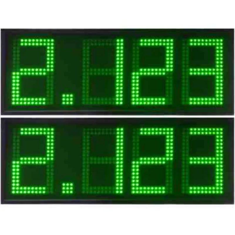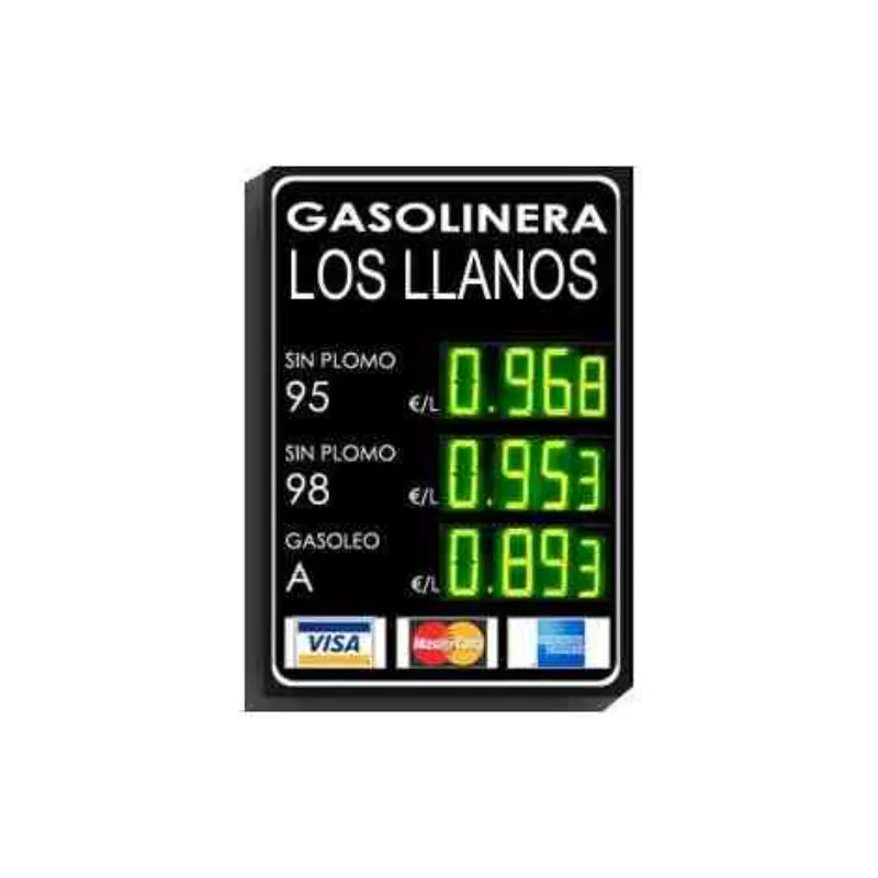 Displays de LED de 27 cm. de altura en color verde, diseñados específicamente para su integración en monolitos de gasolineras. Este color es ideal para la identificación visual rápida de combustibles específicos (como Diesel o productos ecológicos), garantizando una visibilidad impecable en estaciones de servicio.