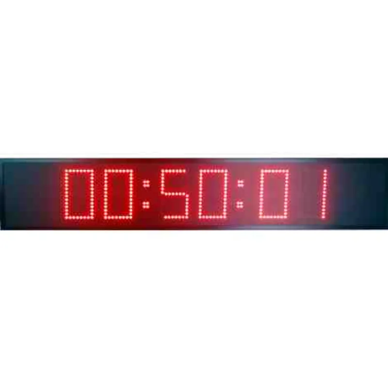 Cronómetro electrónico deportivo de doble cara, diseñado para ofrecer una visibilidad bidireccional completa y detallada del tiempo (Horas, Minutos y Segundos). Su configuración de seis dígitos por cara permite un seguimiento ininterrumpido de la prueba desde ambos frentes, siendo la solución ideal para pasillos de meta, circuitos y pabellones donde participantes y público requieren información simultánea.