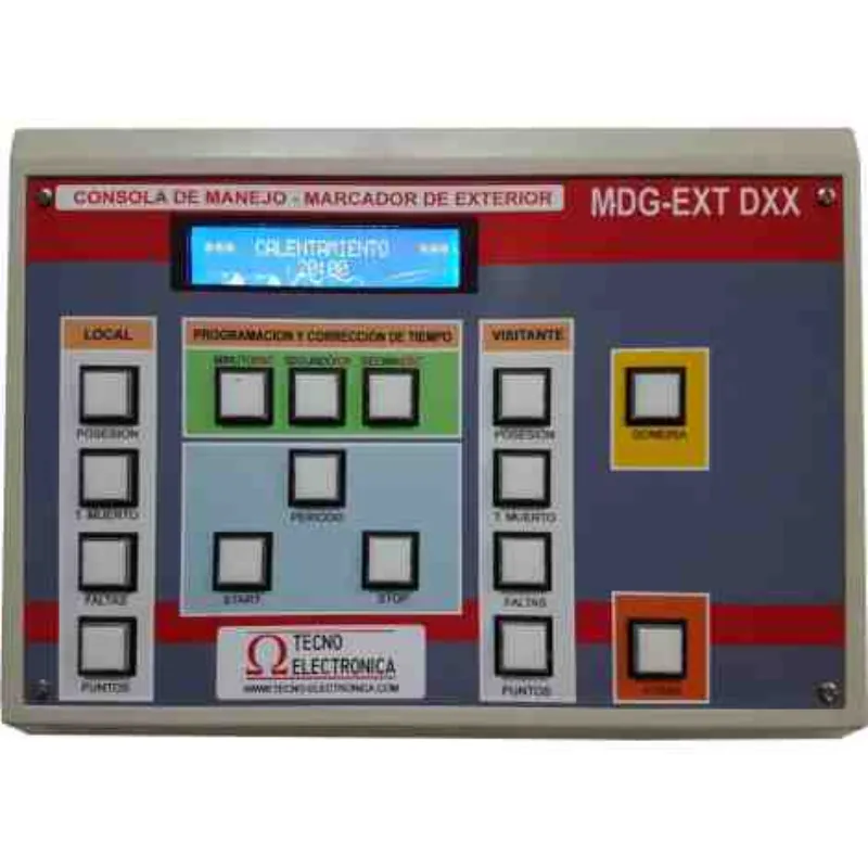 Consola de mando: Controlada por microprocesador (11.059 MHz) con pantalla LCD y pulsadores de alta sensibilidad. Incluye maleta de transporte.