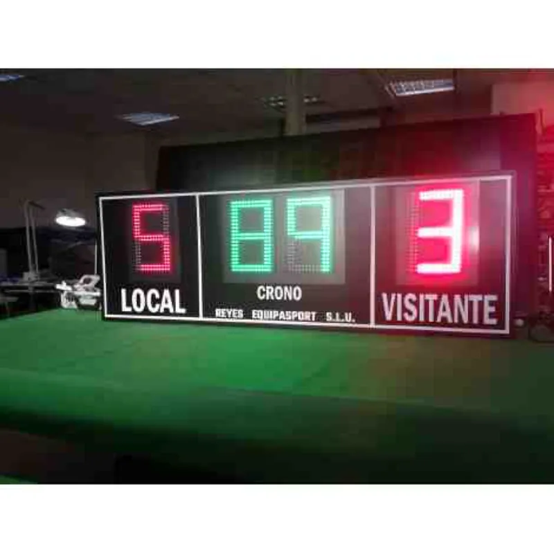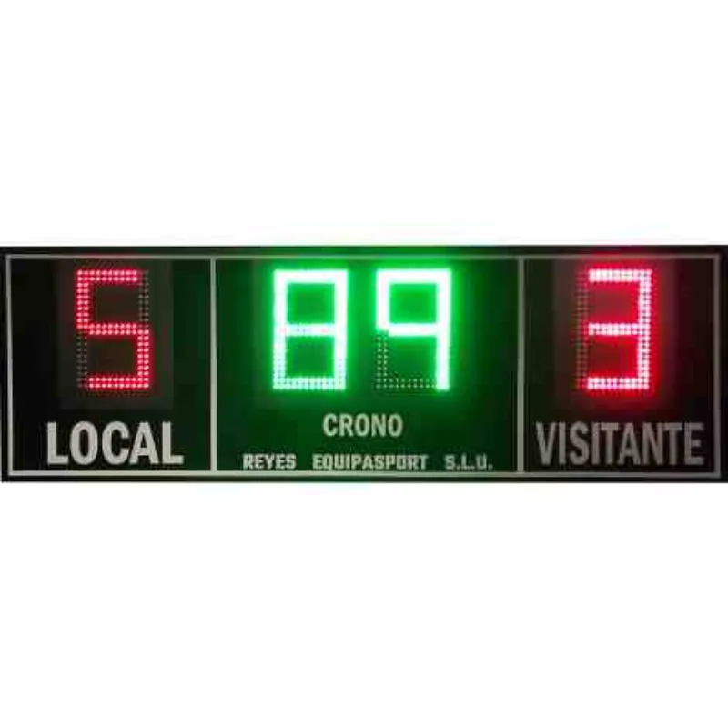 • Puntuación gigante: Dos dígitos de 50 cm. de altura para tanteo de equipo local y visitante (cuenta de 0 a 9).