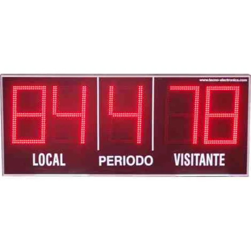 Puntuación de gran formato: Cuatro dígitos de 27 cm. de altura para un tanteo de 0 a 99 puntos (dos dígitos para cada equipo).