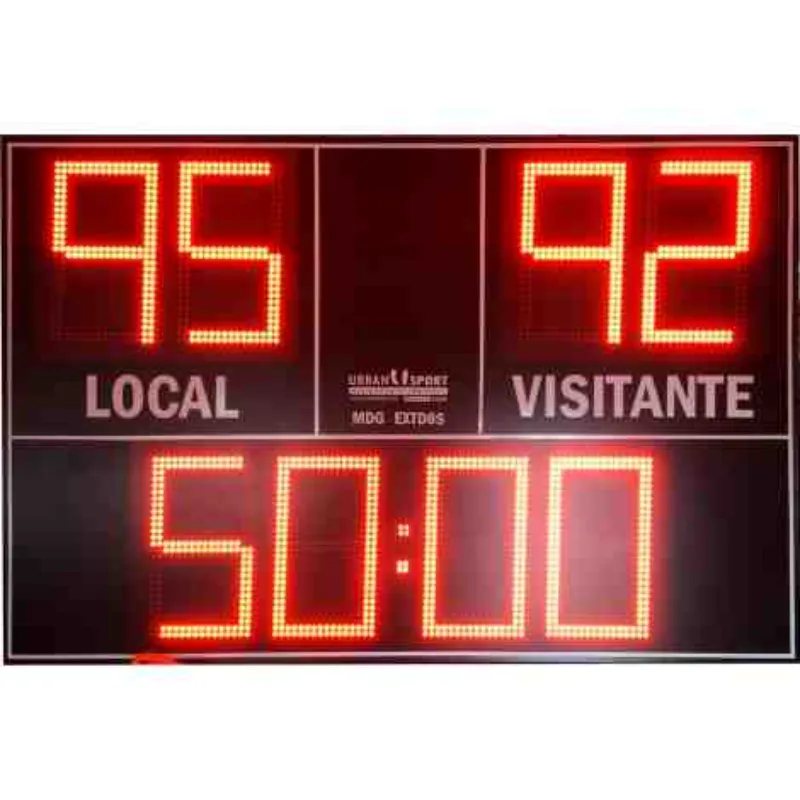 Puntuación de máxima visibilidad: Cuatro dígitos de 50 cm. de altura para un tanteo de 0 a 99 puntos (dos dígitos para cada equipo).