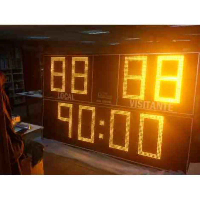 Marcador deportivo electrónico de ocho dígitos diseñado para exteriores con luz solar directa. Su configuración completa de tiempo y puntuación lo hace ideal para fútbol, rugby, hockey y polo en instalaciones de mediano tamaño.