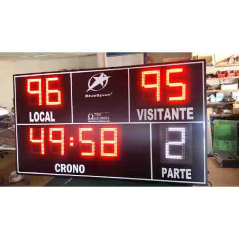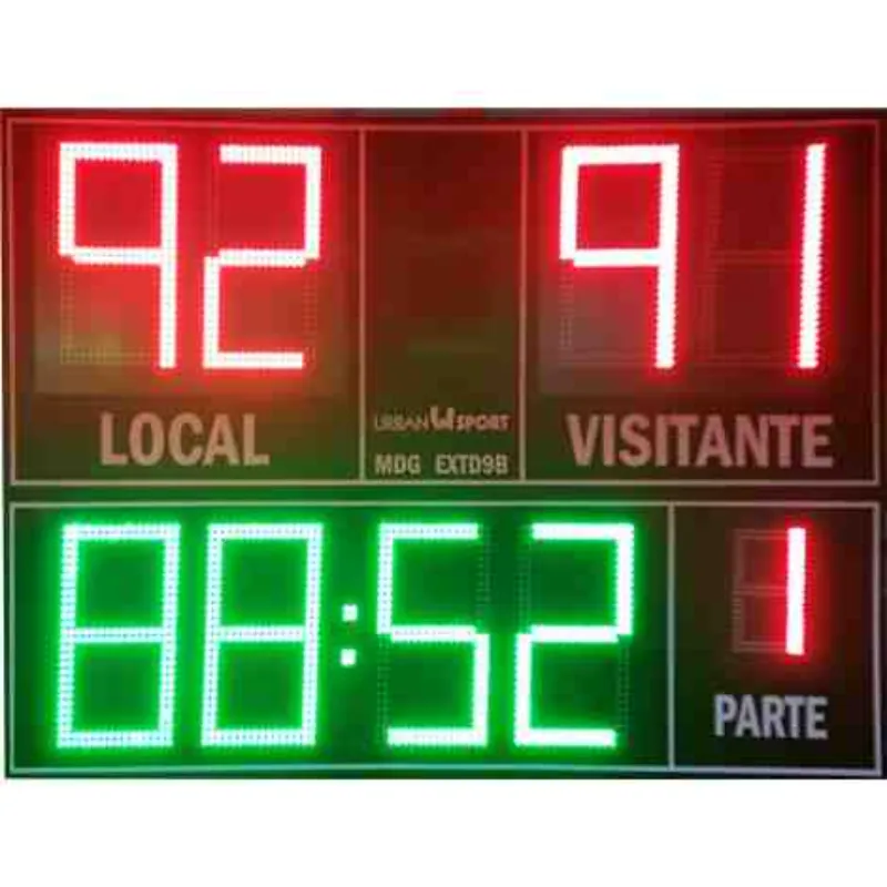 Puntuación de alta visibilidad: Cuatro dígitos de 27 cm. de altura para un tanteo de 0 a 99 puntos (dos dígitos para cada equipo).