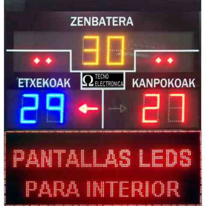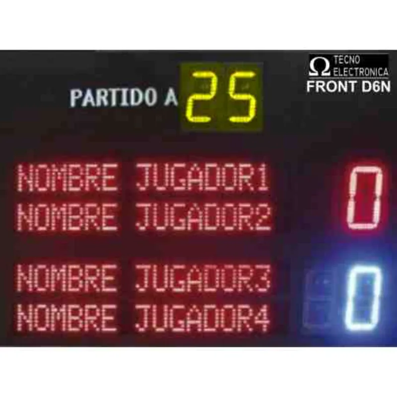 Configuración y Puntuación: Dos dígitos de 27 cm. en color amarillo para señalar los puntos a los que se juega el partido.