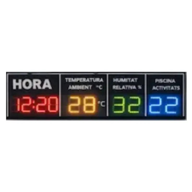 El MG HTH 8N está diseñado para instalaciones donde la visibilidad es clave. Sus dígitos de gran formato permiten mostrar hora, temperatura y humedad con total claridad desde cualquier punto del recinto.