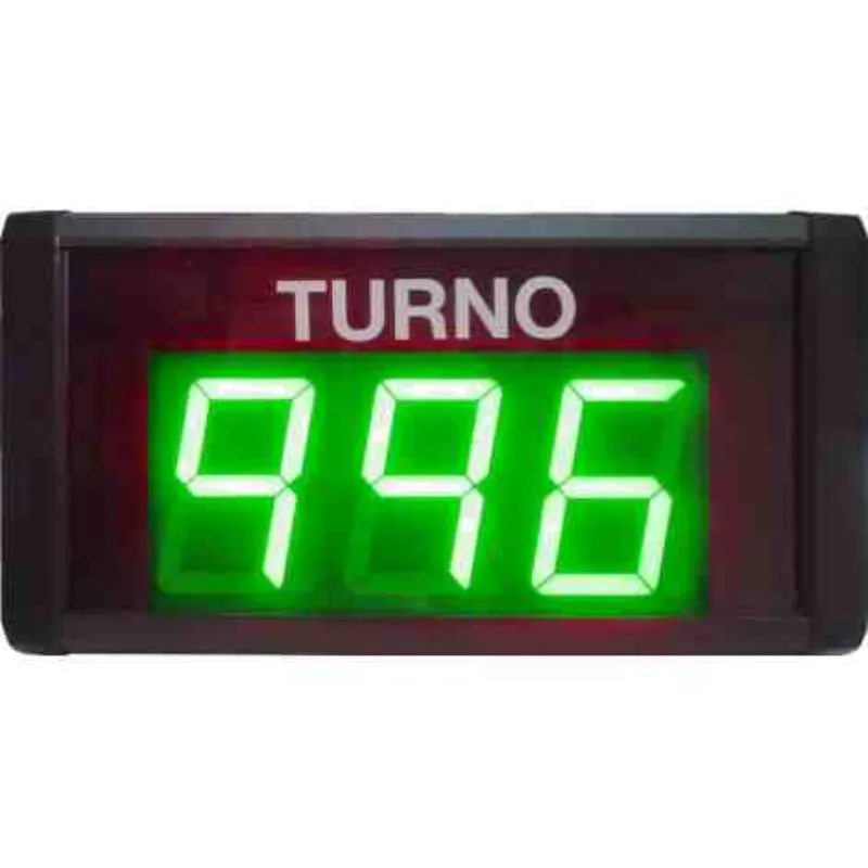 Display electrónico «Su Turno» de tres cifras, diseñado para la gestión eficiente de flujos de espera en comercios, centros de salud y puntos de atención al cliente. Equipado con tecnología LED de color verde y control inalámbrico, ofrece una solución moderna y profesional para organizar turnos de forma clara y ordenada.
